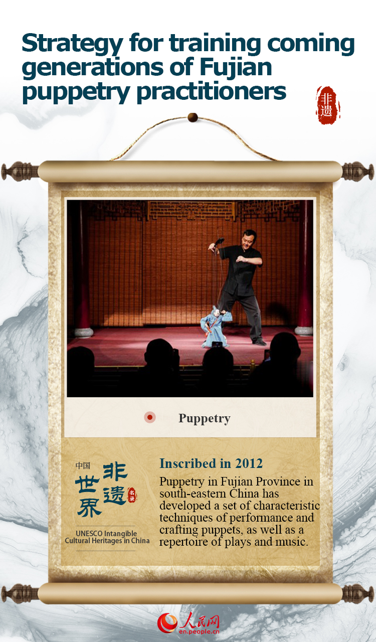 The item, "Strategy for training coming generations of Fujian puppetry practitioners" was selected on UNESCO's Register of Good Safeguarding Practices in 2012.