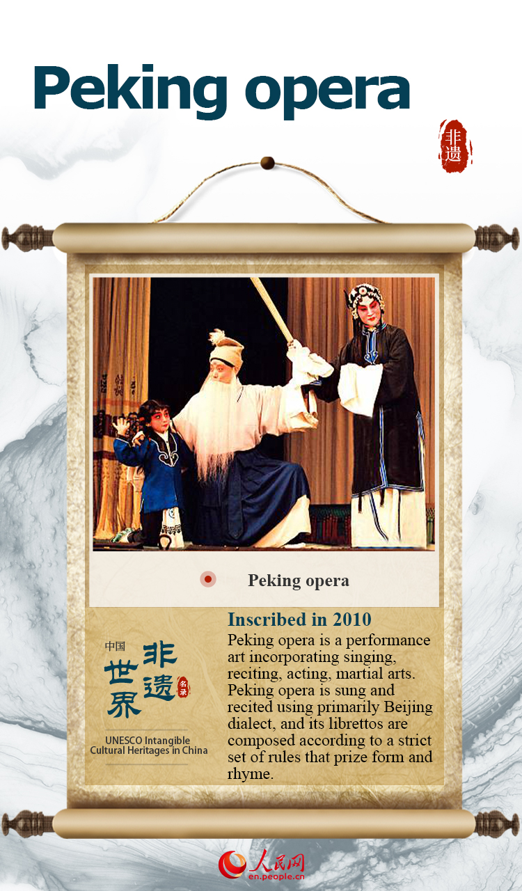 The item, "Peking opera" was inscribed on UNESCO's Representative List of the Intangible Cultural Heritage of Humanity in 2010.