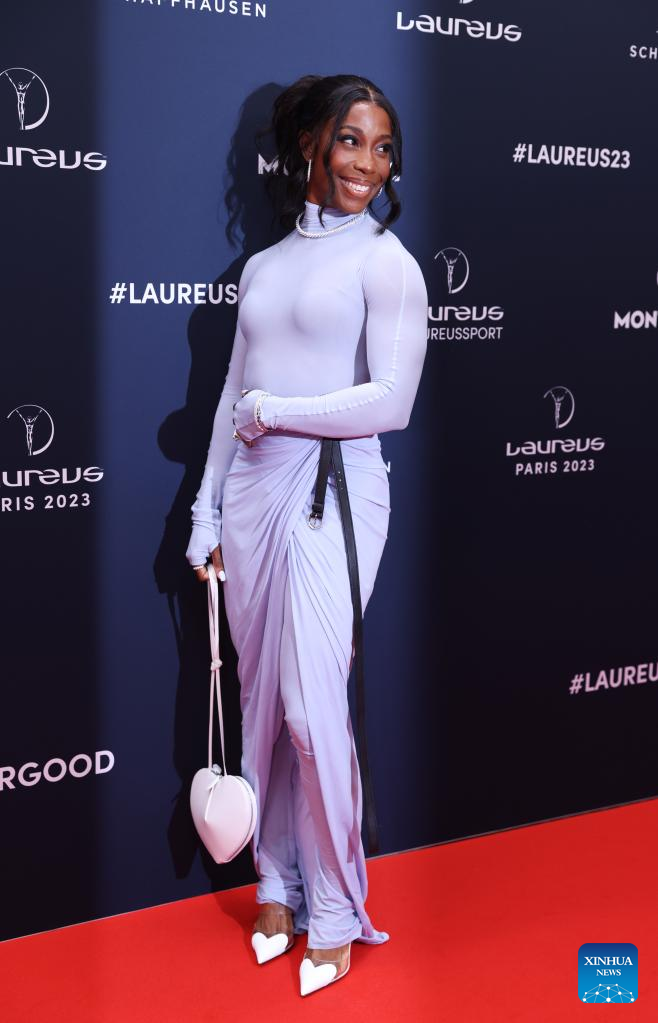 Jamaican sprinter athlete Shelly-Ann Fraser-Pryce arrives at the red carpet prior to the 2023 Laureus World Sports Awards ceremony in Paris France, May 8, 2023. (Xinhua/Gao Jing)