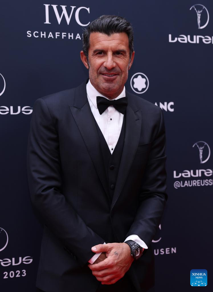 Portuguese former footballer Luis Figo arrives at the red carpet prior to the 2023 Laureus World Sports Awards ceremony in Paris France, May 8, 2023. (Xinhua/Gao Jing)