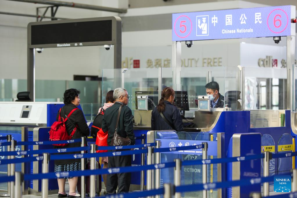 A person queues up for customs clearance at an inspection hall of Horgos, northwest China's Xinjiang Uygur Autonomous Region, May 10, 2023. (Xinhua/Wang Fei)