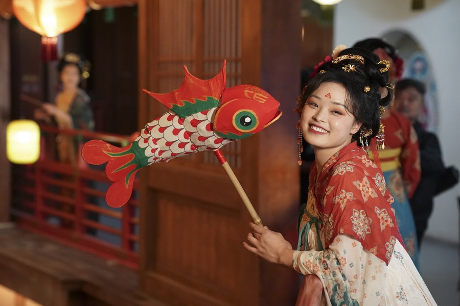 Tourists have fun at a themed street in Xi'an, northwest China's Shaanxi Province, May 11, 2023. (Xinhua/Shao Rui)