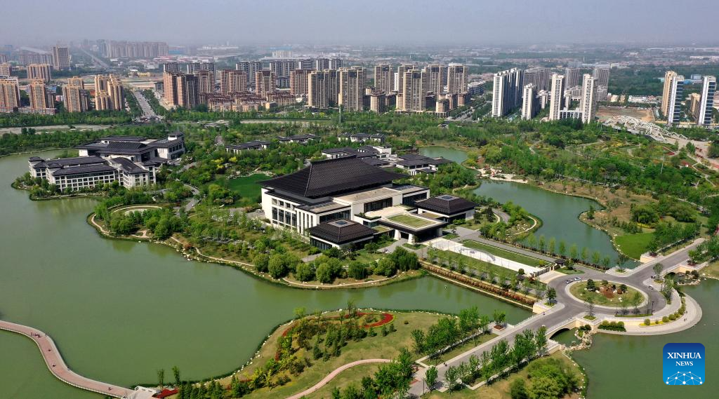 This aerial photo taken on April 29, 2023 shows a view of Xixian New Area in Xi'an, northwest China's Shaanxi Province. (Xinhua/Liu Xiao)