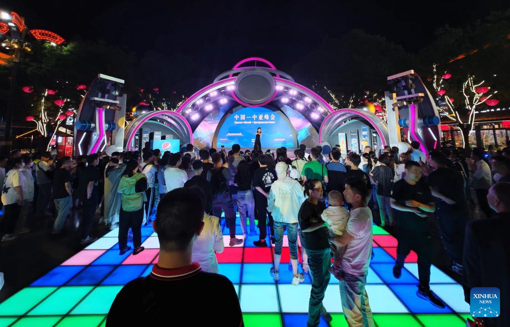 Tourists visit the Datang Everbright City scenic area in Xi'an, northwest China's Shaanxi Province, May 15, 2023. The China-Central Asia Summit is set to take place in Xi'an, the capital city of China's Shaanxi Province, on May 18 and 19. (Xinhua/Li Yibo)