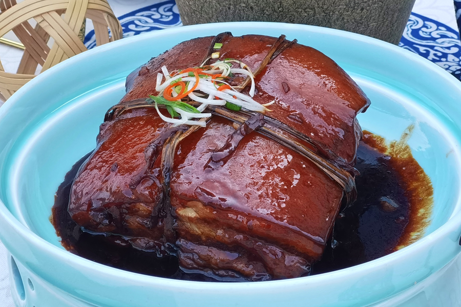 This photo shows a Zhejiang delicacy at a culinary event at Laowaitan, a signature pedestrian street in Ningbo, east China's Zhejiang Province, May 15, 2023. Featuring a long table banquet, the food fiesta brings the participants a public display of delicacies from Central and Eastern European Countries (CEECs) and Zhejiang Province as well. The culinary event, held on the sidelines of the ongoing third China-CEEC Expo &International Consumer Goods Fair, will run until May 18. (Xinhuanet/Zhang Qian)