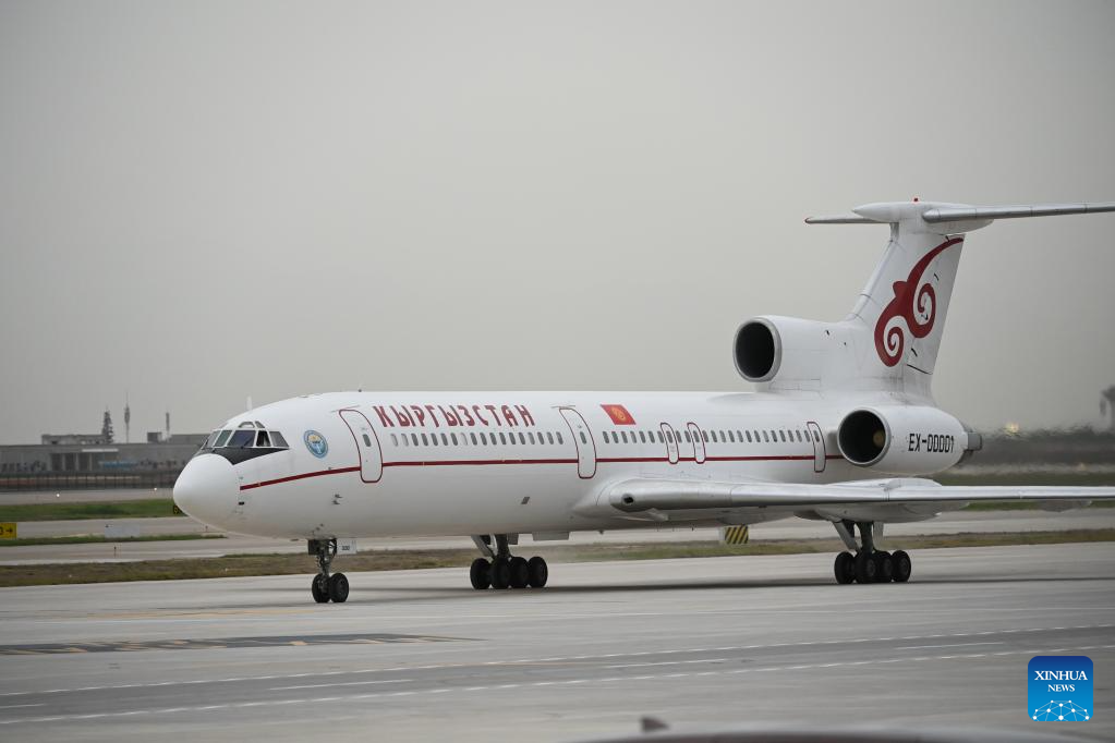 The plane of Kyrgyz President Sadyr Japarov arrives in Xi'an, northwest China's Shaanxi Province, on May 17, 2023. Kyrgyz President Sadyr Japarov arrived in Xi'an, northwest China's Shaanxi Province, late Wednesday afternoon for the China-Central Asia Summit, which is scheduled for May 18 and 19. (Xinhua/Li Yibo)