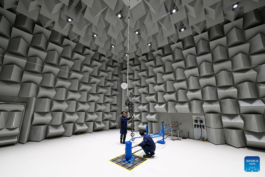 TIANJIN, May 18 (Xinhua) -- Mounted on the ceiling and walls, numerous anechoic wedges made the room with low ambient noise a bit eerie but brimming with a striking sci-fi atmosphere.