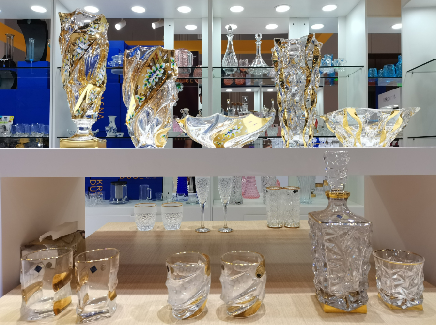 This photo taken on May 16, 2023 shows Czech crystal items on display at the China-Central & Eastern European Countries (CEEC) Expo in Ningbo, east China's Zhejiang Province. Distinctive commodities from Central and Eastern European countries, especially agricultural food, wines, and dairy products, have drawn wide attention at the expo. (Xinhuanet/Zhang Qian)