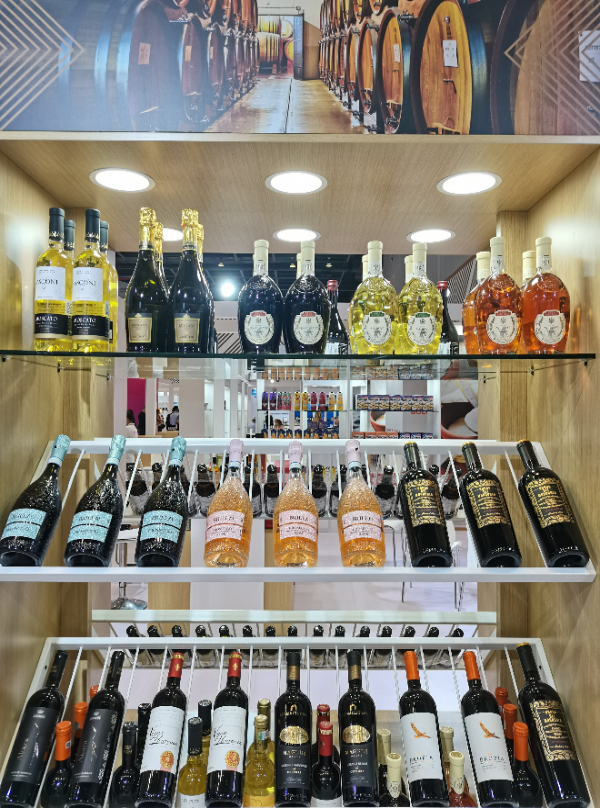 This photo taken on May 16, 2023 shows wines on display at the China-Central & Eastern European Countries (CEEC) Expo in Ningbo, east China's Zhejiang Province. Distinctive commodities from Central and Eastern European countries, especially agricultural food, wines, and dairy products, have drawn wide attention at the expo. (Xinhuanet/Zhang Qian)