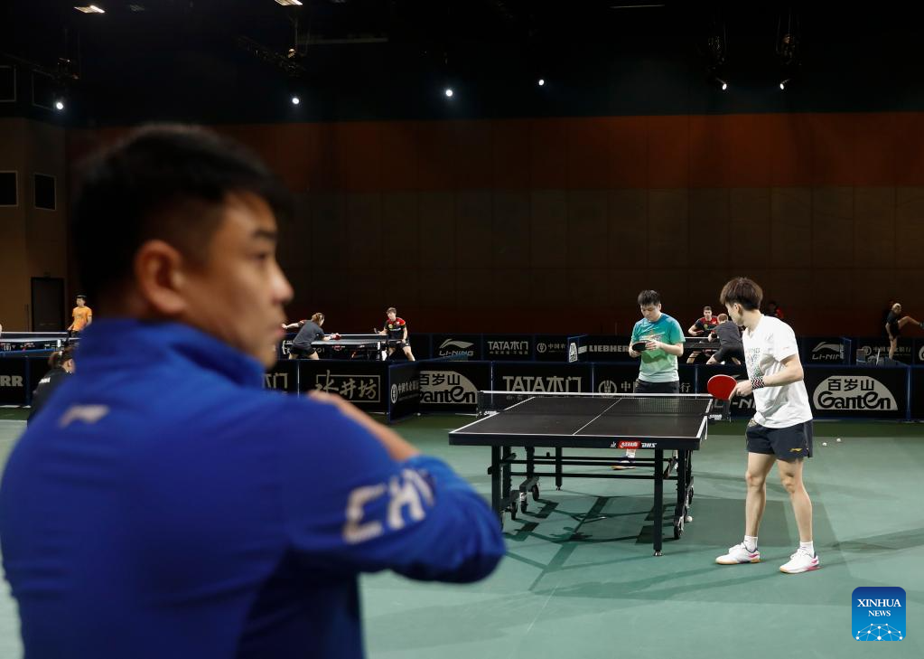 Ma Long of China attends a training session for the 2023 ITTF Table Tennis World Championships Finals in Durban, South Africa, May 18, 2023. (Xinhua/Zhang Yudong)