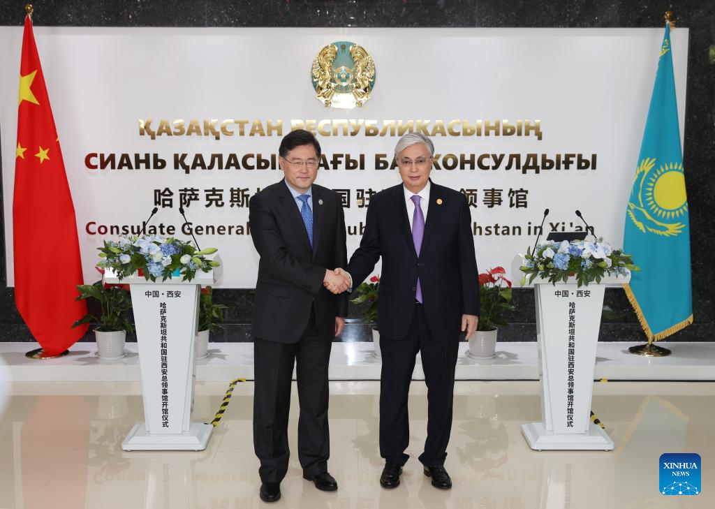 Chinese State Councilor and Foreign Minister Qin Gang attended the opening ceremony of the Consulate General of Kazakhstan in Xi'an, together with Kazakh President Kassym-Jomart Tokayev and Kazakh Deputy Prime Minister and Minister of Foreign Affairs Murat Nurtleu on Friday.