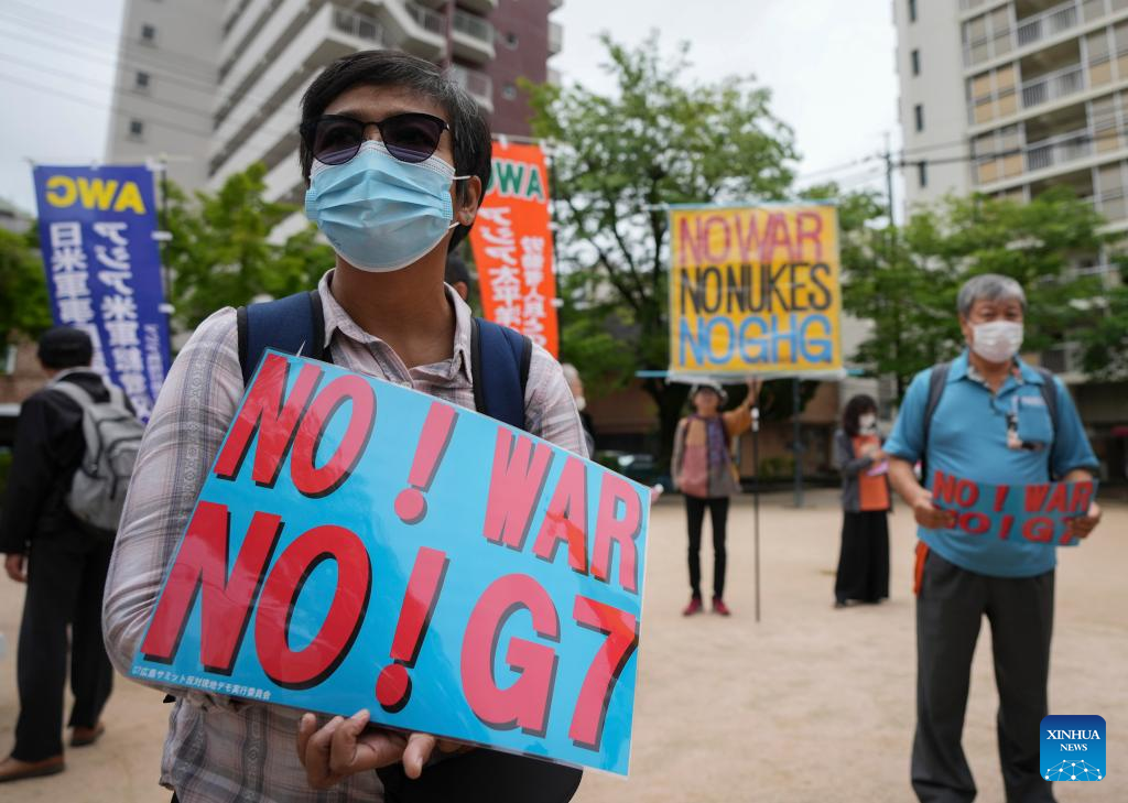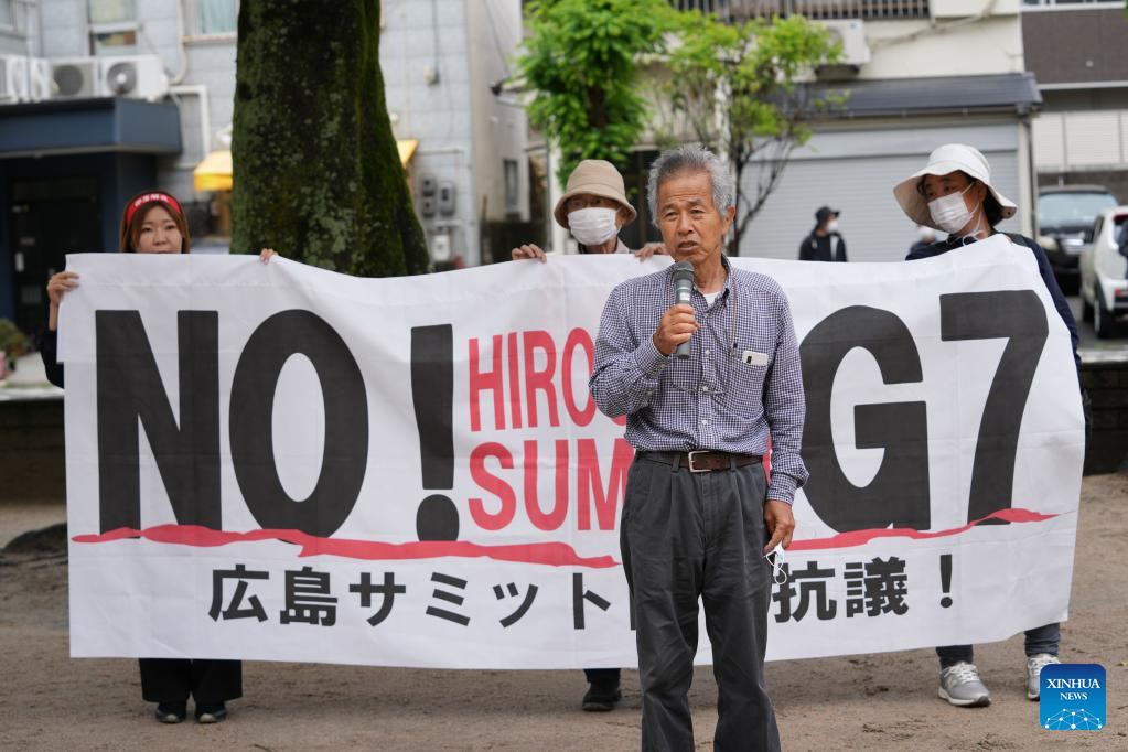 People rally in a protest against the Group of Seven (G7) summit in Hiroshima, Japan, May 19, 2023. Amid waves of protests, the G7 leaders' annual summit got underway in Hiroshima on Friday. (Xinhua/Zhang Xiaoyu)