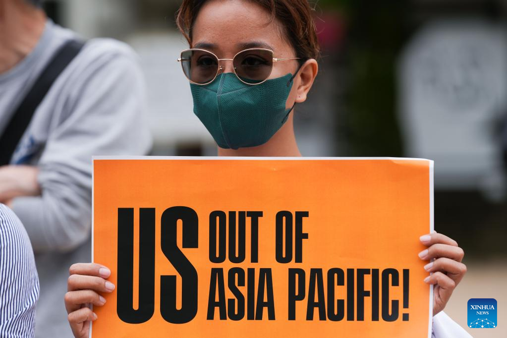 Crowds of protesters rallied around the summit venue, chanting slogans such as "U.S. Imperialists, Number One Terrorist!" "Stop the Lies!" "Stop the War!" "Stop QUAD Alliance!" and "Stop NATO Alliance!"