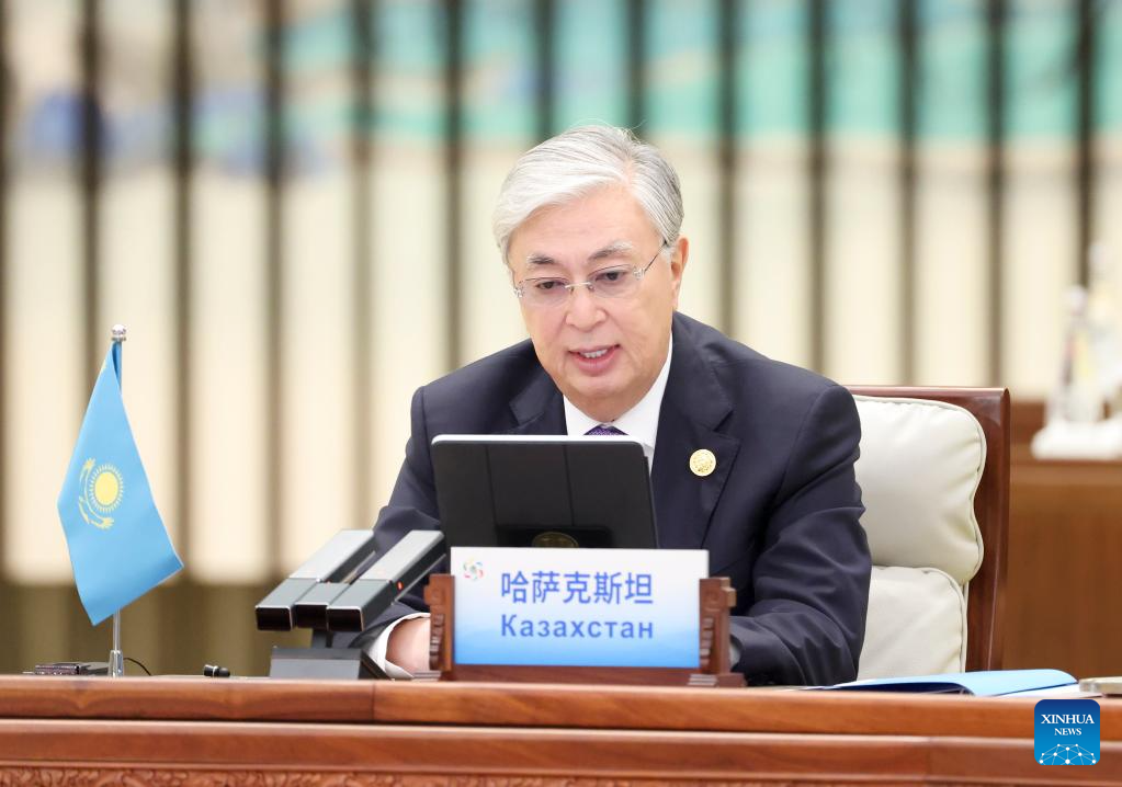 Kazakh President Kassym-Jomart Tokayev speaks during the first China-Central Asia Summit in Xi'an, northwest China's Shaanxi Province, May 19, 2023. The first China-Central Asia Summit was successfully concluded here Friday. (Xinhua/Ding Haitao)