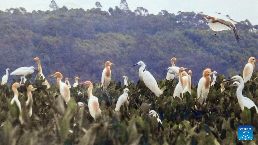 Flie photo taken by Mo Jirui shows birds in Shankou Mangrove Nature Reserve in Hepu County of Beihai City, south China's Guangxi Zhuang Autonomous Region. Mo Jirui, 68, started working as a conservator at Shankou Mangrove Nature Reserve in 1993. (Xinhua)