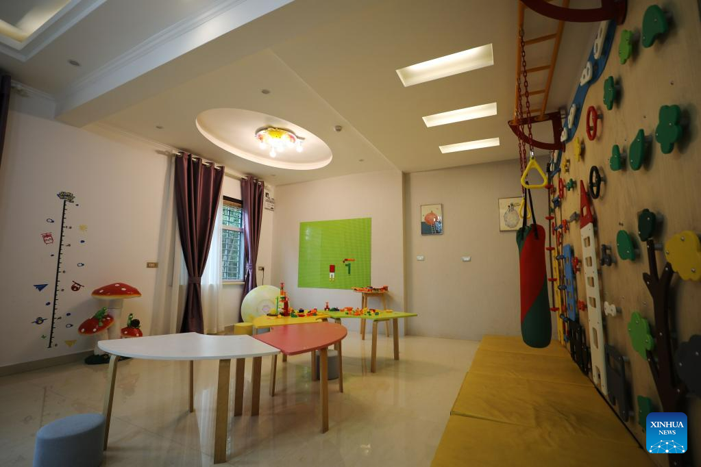 This photo taken on May 24, 2023 shows a public play area of a homestay in Pushan Village of Longyou County, east China's Zhejiang Province. Pushan Village has donned a new look with improved public infrastructure and colorful decoration in the past years. Entertainment facilities and homestay businesses have also been developed to boost tourism and increase local villagers' income, injecting momentum and vitality into rural revitalization. (Xinhua/Du Xiaoyi)
