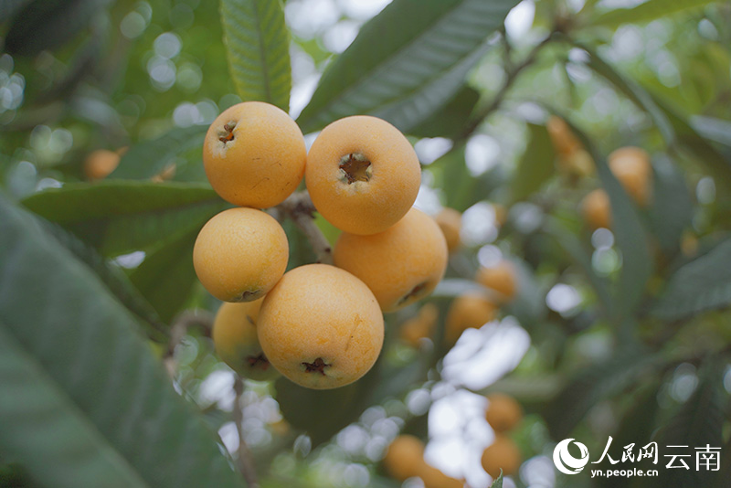 Loquats on a tree in Yongshan county, Zhaotong city, southwest China's Yunnan Province. (People's Daily Online/Cai Shujing)