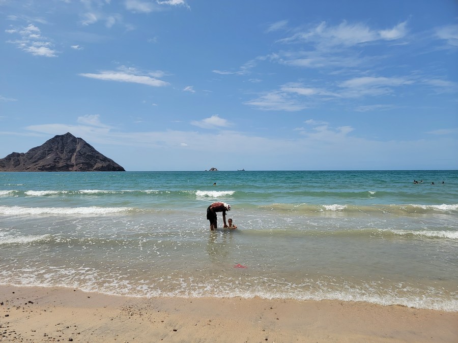 A child plays on the beach to avoid power outages amid scorching summer heat in the southern port city of Aden, Yemen, on May 25, 2023. (Xinhua/Murad Abdo)