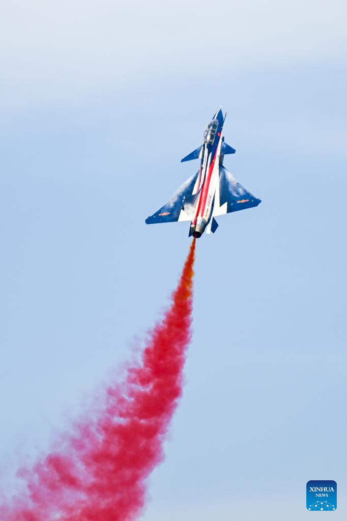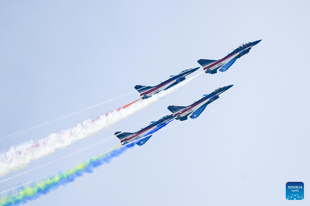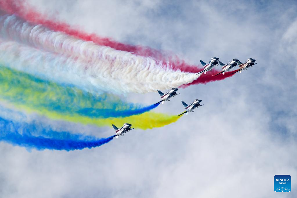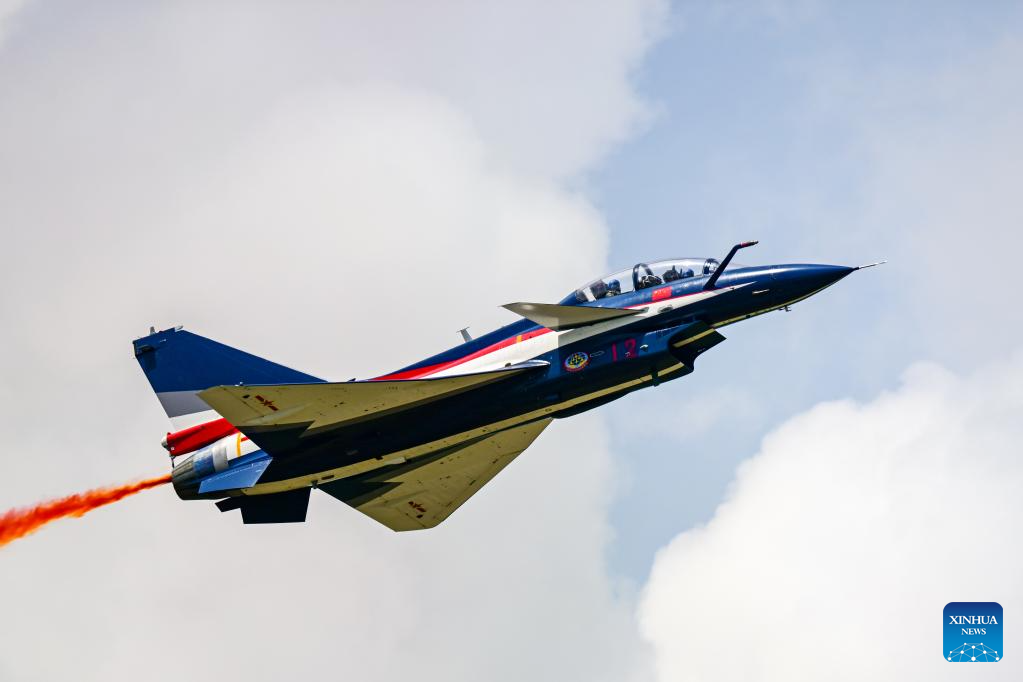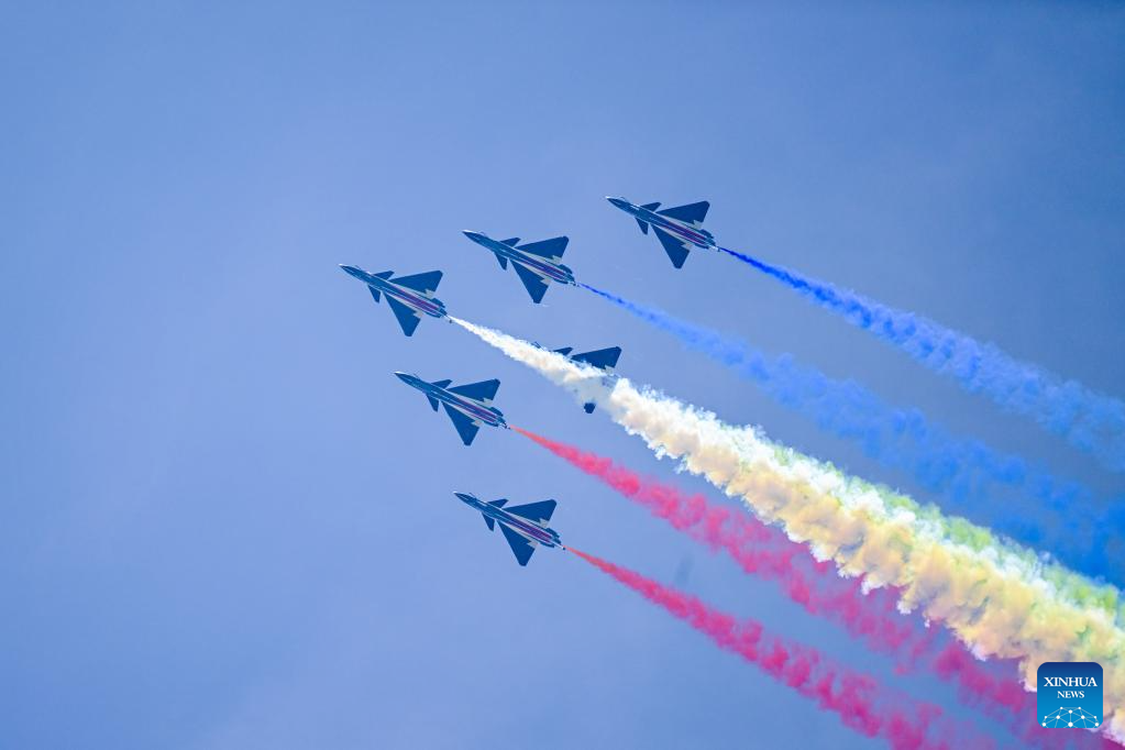 The Chinese People's Liberation Army (PLA) Air Force's August 1st aerobatics team performs at the 16th Langkawi International Maritime and Aerospace Exhibition (LIMA 2023) in Langkawi, Malaysia, May 25, 2023. (Xinhua/Zhu Wei)