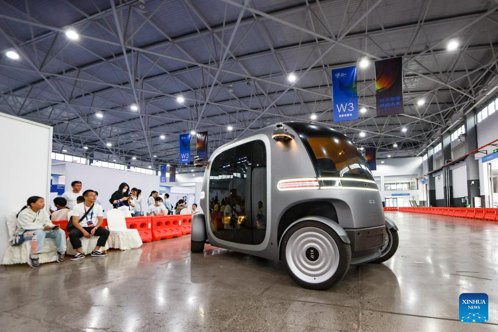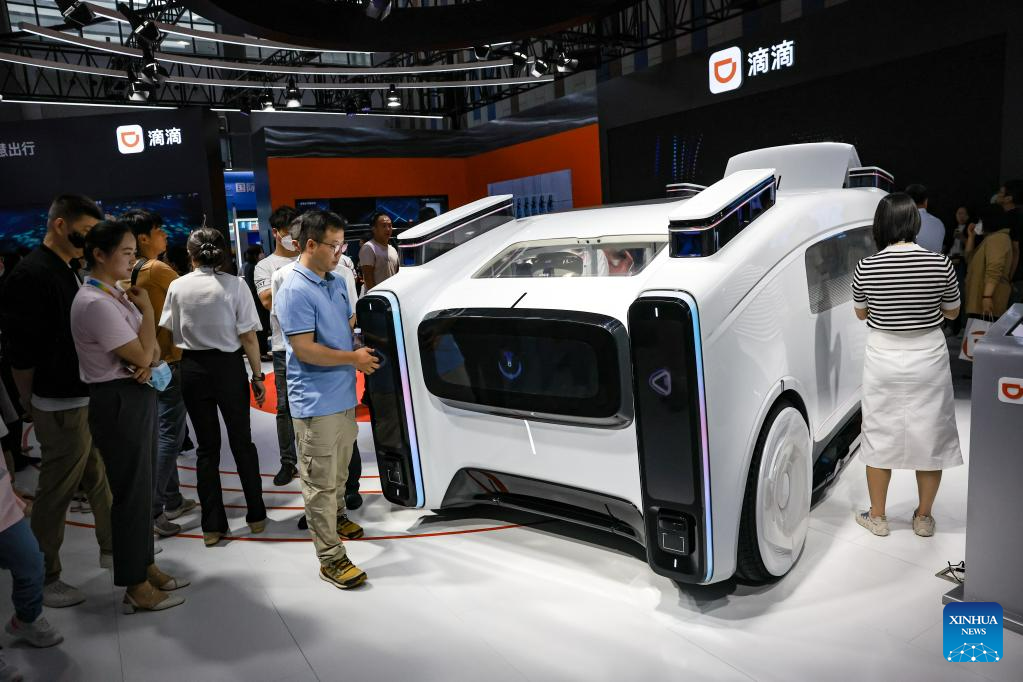 Participants view a concept vehicle DiDi Neuron at the China International Big Data Industry Expo 2023 in Guiyang, southwest China's Guizhou Province, May 26, 2023. The China International Big Data Industry Expo 2023 kicked off on Friday in Guiyang, showcasing the country's latest achievements in the big data industry and promoting relevant business exchanges. (Xinhua/Ou Dongqu)