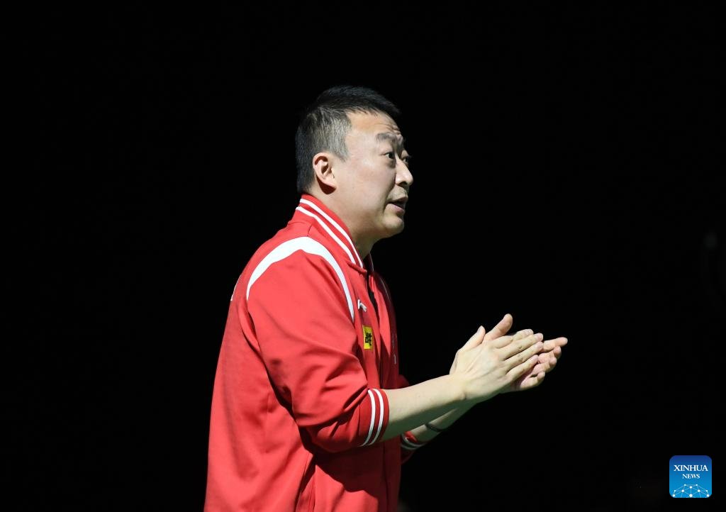 China's coach Ma Lin applauds for Chen Meng/Wang Yidi of China during the women's doubles semifinal against Kihara Miyuu/Nagasaki Miyu of Japan at 2023 ITTF Table Tennis World Championships Finals in Durban, South Africa, May 26, 2023. (Xinhua/Li Yahui)