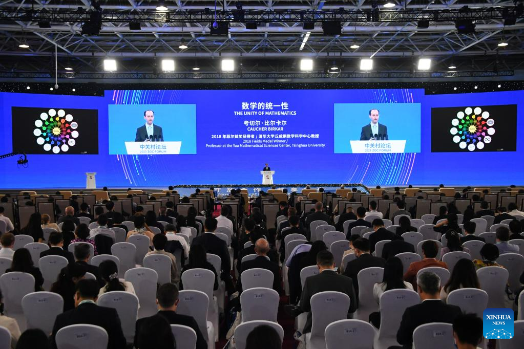 Caucher Birkar, 2018 Fields Medal winner, and professor at the Yau Mathematical Sciences Center of Tsinghua University, speaks during the plenary meeting of the 2023 Zhongguancun Forum (ZGC Forum) in Beijing, capital of China, May 26, 2023. Themed "Open Cooperation for a Shared Future," the 2023 Zhongguancun Forum held a plenary meeting here on Friday. (Xinhua/Ren Chao)