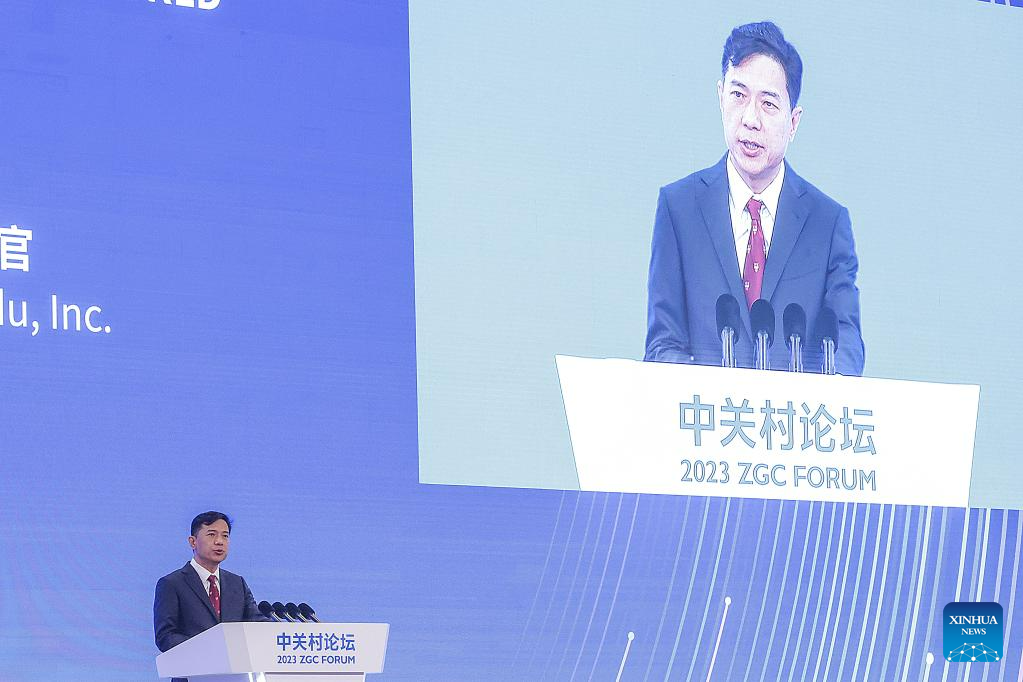 Robin Li, chairman and CEO of Baidu, Inc., speaks during the plenary meeting of the 2023 Zhongguancun Forum (ZGC Forum) in Beijing, capital of China, May 26, 2023. Themed "Open Cooperation for a Shared Future," the 2023 Zhongguancun Forum held a plenary meeting here on Friday. (Xinhua/Zhang Yuwei)