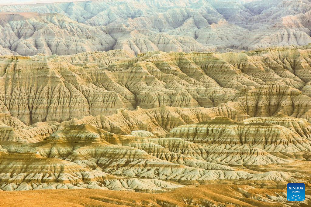 This photo taken on May 25, 2023 shows the landscape of earth forest in Zanda County, southwest China's Tibet Autonomous Region. Zanda is famous for the unique landscape of earth forest, which was formed by geological movement and soil erosion. These "forests" look yellowish, but the color varies in different parts. (Xinhua/Shao Zedong)