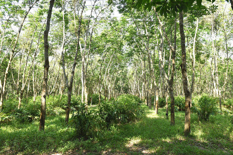 Photo shows Alpinia oxyphylla Miq., an edible and medicinal herb, planted under rubber trees. (Photo/Lin Xiaodan)