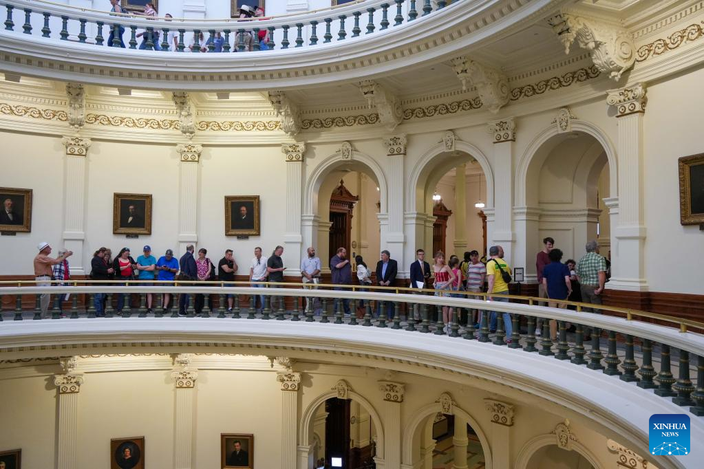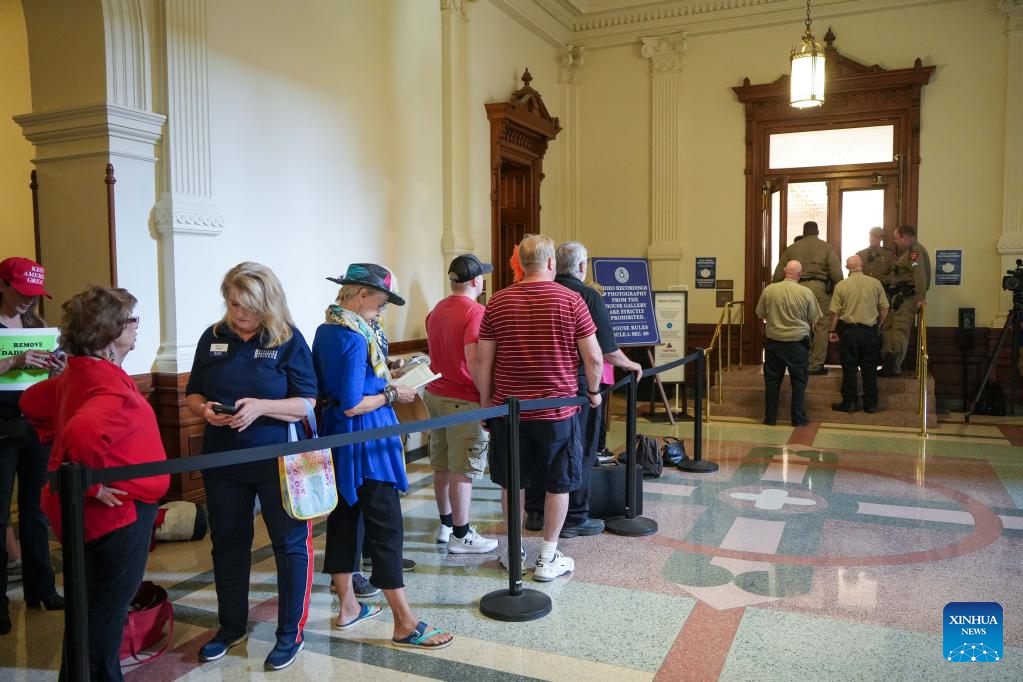 People wait to enter the House Gallery at the Texas Capitol to watch a debate on the impeachment of Attorney General Ken Paxton in Austin, Texas, the United States on May 27, 2023. The GOP-led Texas House of Representatives on Saturday voted to impeach Attorney General Ken Paxton, a powerful Republican and firm ally of former President Donald Trump in the second largest U.S. state, over yearslong accusations of corruption, lawbreaking and power-abusing. (Photo by Bo Lee/Xinhua)