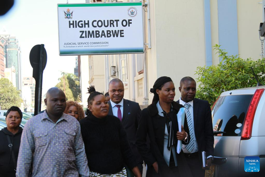 Members of the Broad Alliance Against Sanctions (BAAS), Zimbabwe's anti-sanctions lobby group, and their legal team arrive at the High Court to file a court application seeking reparations from the United States for imposing sanctions on Zimbabwe, in Harare, Zimbabwe, May 29, 2023. (Xinhua/Tafara Mugwara)