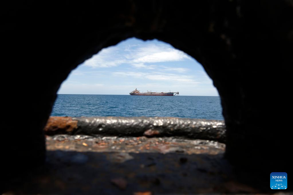 The FSO Safer vessel is seen at Ras Issa port in Hodeidah province, Yemen, on May 30, 2023. A United Nations (UN) ship arrived on Tuesday at the site of the floating storage and offloading (FSO) Safer vessel, a decaying super oil tanker, off the coast of Ras Issa, Hodeidah in western Yemen. (Photo by Mohammed Mohammed/Xinhua)