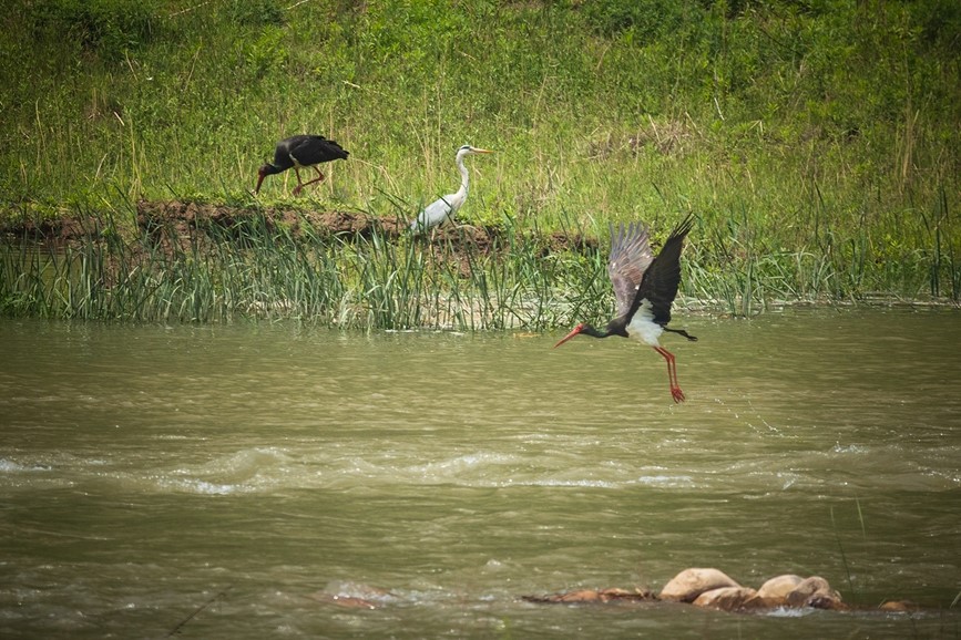Different species of birds live in harmony in Henan Anyang Zhanghe Canyon National Wetlands Park in Anyang city, central China's Henan Province. (Photo/Duan Xianzhong)