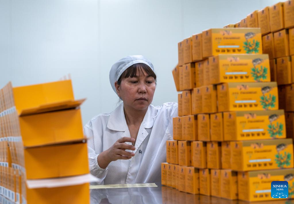 A woman works at a packing workshop of a pharmaceutical company in Wenshan City, Wenshan Zhuang and Miao Autonomous Prefecture, southwest China's Yunnan Province, May 31, 2023.?(Xinhua/Zhou Dixiao)