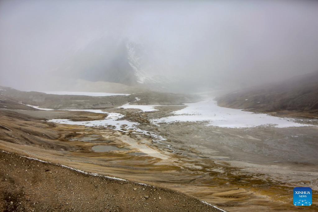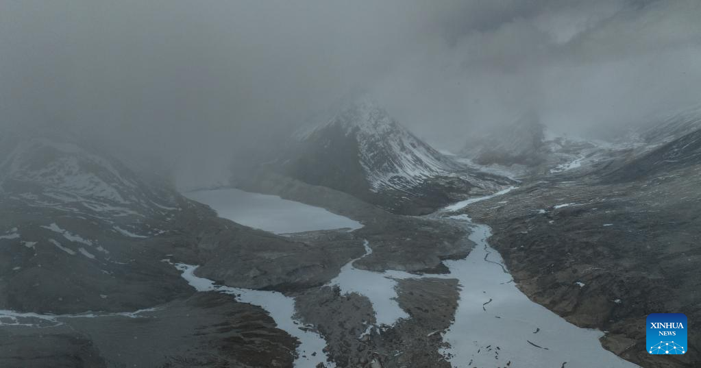 This photo taken on May 31, 2023 shows a view of the Gyaimaryangzhong Glacier in southwest China's Tibet Autonomous Region. The Gyaimaryangzhong Glacier is the source of the Yarlung Zangbo River, China's longest plateau river. (Xinhua/Fei Maohua)