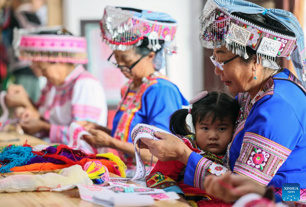 Embroidery industry provides jobs for local women of Miao ethnic group in Yunnan county