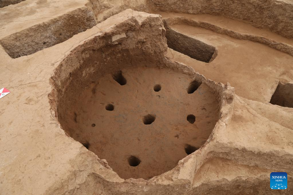 This photo taken on April 6, 2022 shows a pottery kiln unearthed from the ruins of a village dating back to more than 3,000 years in the current Zhaoyao Village of Wu'an City, north China's Hebei Province. (Xinhua)