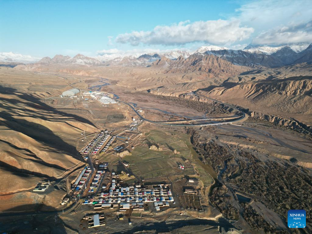 This aerial photo taken on April 26, 2023 shows a view of Simuhana village in Wuqia County of the Kizilsu Kirgiz Autonomous Prefecture, northwest China's Xinjiang Uygur Autonomous Region. (Xinhua/Hao Zhao)