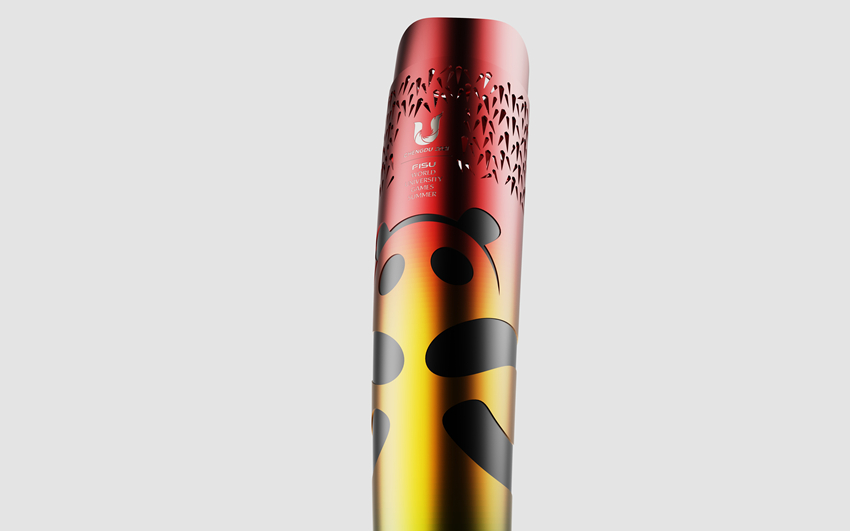 The Universiade's torch, dubbed "Rong Huo," incorporates "Rong," a nickname of Chengdu, which symbolizes harmony and inclusiveness. Like the embelm, the torch also features four gradient colors, highlighting the vibrant lifestyle of Chengdu and the youth of university students.
