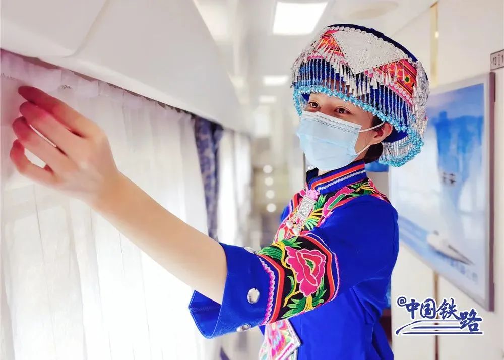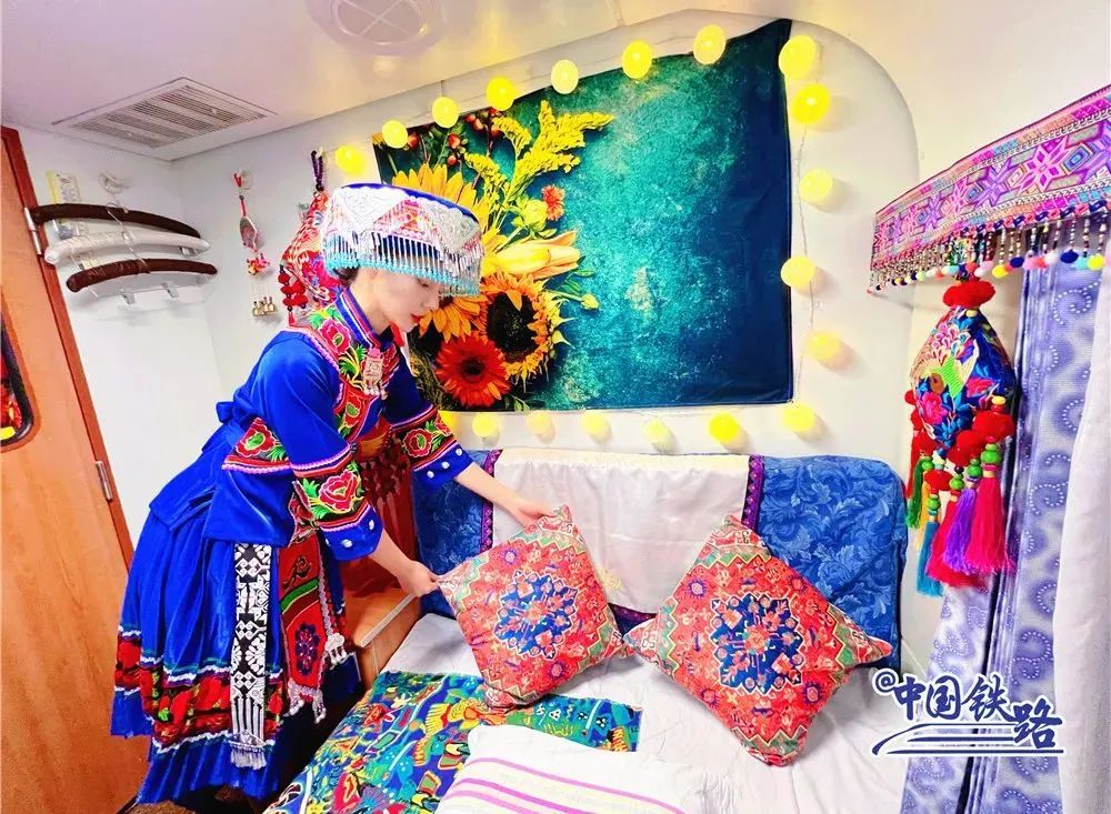 Train attendants wear ethnic costumes, and can speak the languages of ethnic groups. The train is adorned with elements of ethnic groups in Yunnan to try to fully present the province's diverse ethnic culture to passengers.