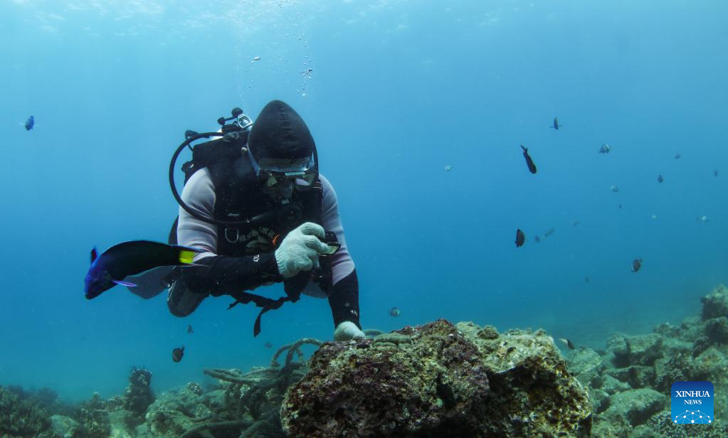 Pic story of front-line worker committed to marine environmental protection in China's Hainan