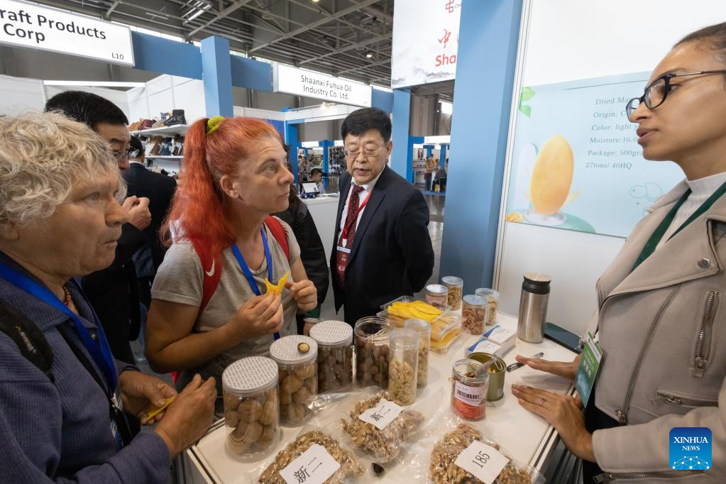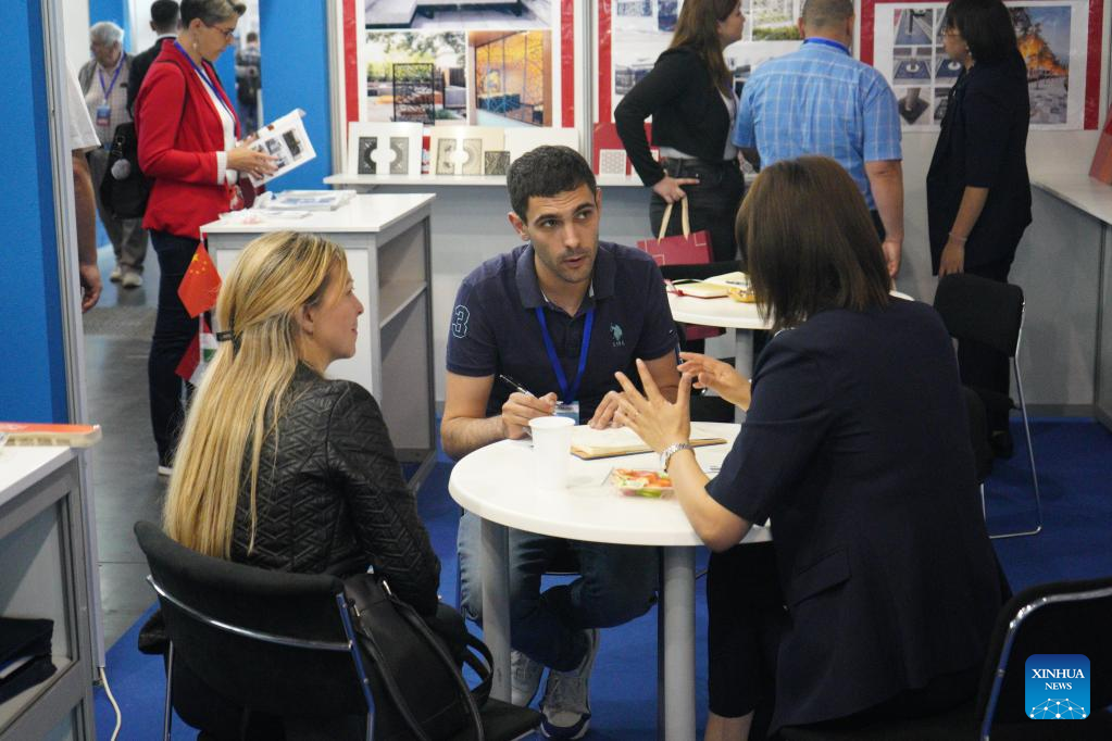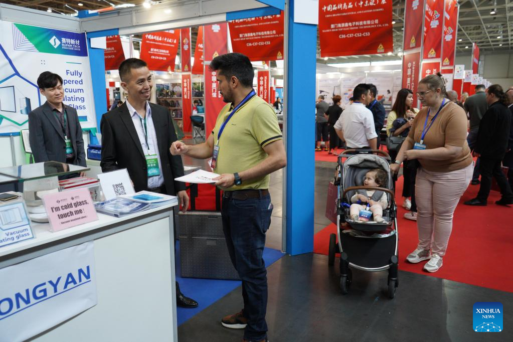 Visitors talk with an exhibitor at the 2023 China Brand Fair (Central and Eastern Europe) in Budapest, Hungary, on June 8, 2023. After a three-year hiatus, the 2023 China Brand Fair (Central and Eastern Europe) has once more opened in Budapest, showcasing the expanding economic and trade ties between China and Hungary. (Xinhua/Chen Hao)