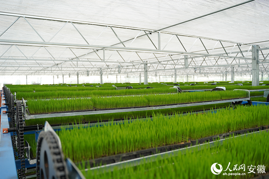 Rice seedling breeding machines at an intelligent seedling cultivation center in the Munan agricultural industrial park in Jin'an district, Lu'an city, east China's Anhui Province. (People's Daily Online/Wang Rui)