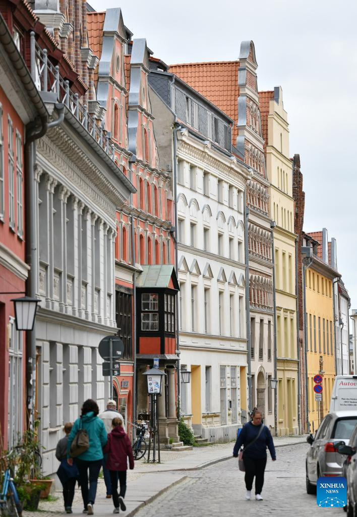 People walk in a street in Stralsund, northeastern Germany, June 1, 2023. (Xinhua/Ren Pengfei)