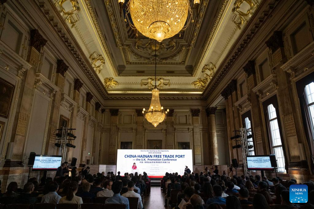 This photo taken on June 9, 2023 show a view of China Hainan Free Trade Port -- the U.K. Promotion Conference in London, Britain. (Photo by Stephen Chung/Xinhua)