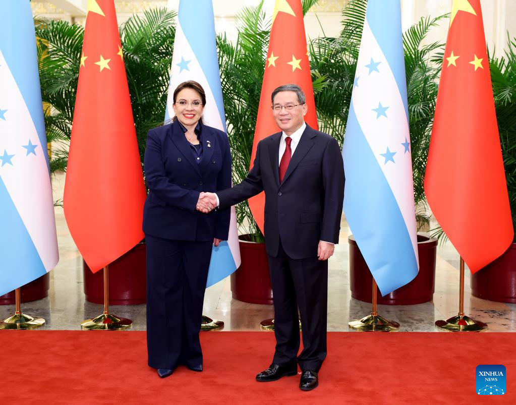Li noted that in March this year, the two countries' leaders made the important political decision to establish diplomatic relations, turning over a new page in bilateral ties. He said China greatly appreciates the firm commitment Honduras has made to abide by the one-China principle, and its choice to stand on the right side of history.