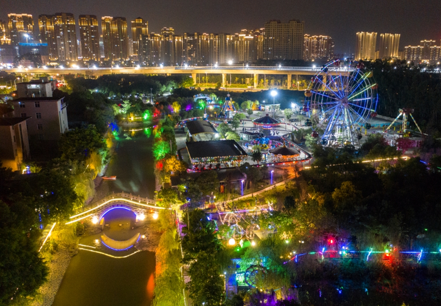 Photo shows a night view of the scenic area featuring old buildings in Chang'an village, Changle district, Fuzhou, capital of southeast China's Fujian Province. (Photo/Jiang Liang)