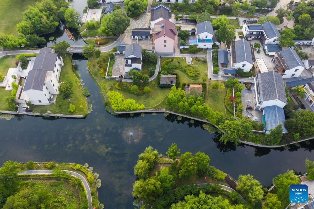 This aerial photo taken on June 14, 2023 shows a view of Xushan Village in Nanhu District, Jiaxing City, east China's Zhejiang Province.