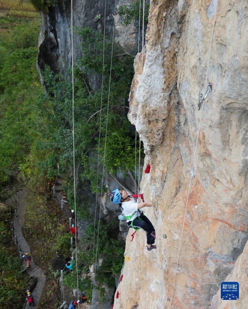 "We invited members of the Chinese Mountaineering Association to the event. They said the natural cliffs here are conducive to developing climbing sports," said Huang Xujin, head of Mashan county's bureau of culture, radio, television, sports and tourism.