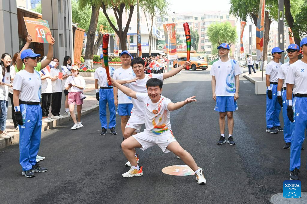 Students peform before the torch relay of the Chengdu 2021 FISU Summer World University Games at Harbin Institute of Technology in Harbin, northeast China's Heilongjiang Province, June 15, 2023. (Xinhua/Zhang Tao)